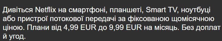 Сьогодні подешевшали всі передплати сервісу. Якщо раніше вартість базового плану (480p) в Україні становила 7,99 євро, то зараз — 4,99 євро. Стандартний план (1080p) коштував 9,99 євро, а тепер — 7,49 євро. Преміумпакет (4К+HDR) коштує 9,99 євро, раніше — за 11,99 євро.