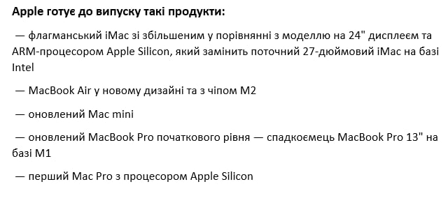 🍏Apple випустить п'ять нових комп'ютерів. Журналіст Bloomberg Марк Гурман розповів, які Mac варто чекати в 2022 році. Крім Mac Apple випустить iPhone SE з підтримкою 5G, нові AirPods Pro, а також гарнітуру доповненої реальності.