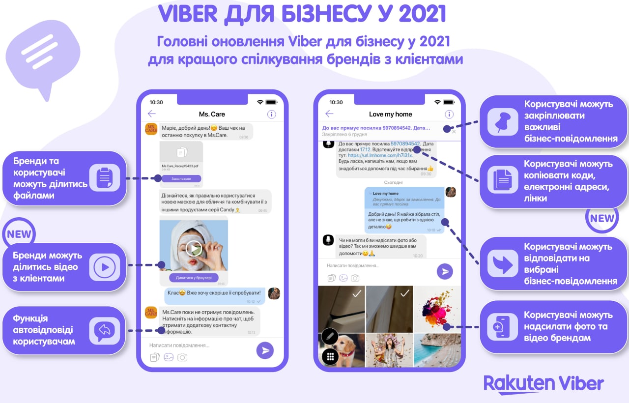 Месенджер оголосив про запуск оновлень. Користувачі зможуть копіювати коди, посилання та контактну інформацію одним кліком, а бренди надсилатимуть бізнес-повідомлення з відео, заявили нам у компанії. Користувачі отримають змогу відповісти на відео та закріпити його в діалозі з брендом, як і будь-яке інше бізнес-повідомлення.