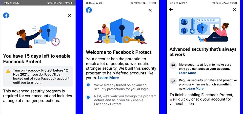 Соцмережа Марка Цукерберга почала розсилати повідомлення про необхідність включити розширену програму безпеки. В іншому випадку акаунт буде заблокований. Вже кілька користувачів з України отримали повідомлення, в яких соцмережа наполягає на активації розширеної програми безпеки. Facebook дає 15 днів, протягом яких користувач добровільно повинен включити функцію. Ми вирішили розібратися, що ж таке Facebook Protect.