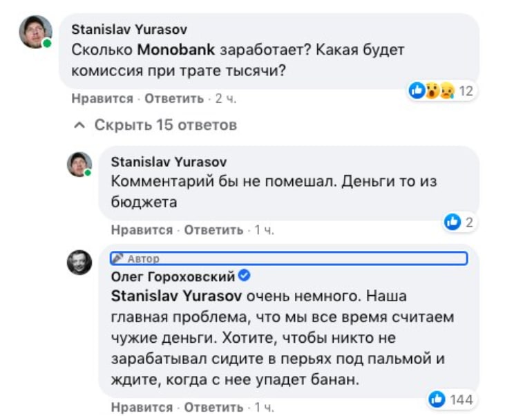 Співзасновник monobank Олег Гороховський заявив, що за 4 години банк здійснив виплат на 430 млн грн — за вакцинацію. Як відомо, в ціні кожного товару, що продається в Україні, закладено від 1,5% до 3% банківської комісії, яку рітейлери платять банкам за оплати карткою. Наш журналіст поцікавився у Олега Гороховського, скільки заробить mono за обслуговування ковідних грошей.