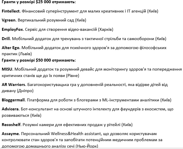 Ukrainian Startup Fund оголосив переможців 34-го та 35-го Pitch Day, що відбулися 26 листопада та 3 грудня 2021 року. Журі обрало 11 переможців, яких буде профінансовано на суму в $425 000 (гранти по $25 000 та по $50 000).