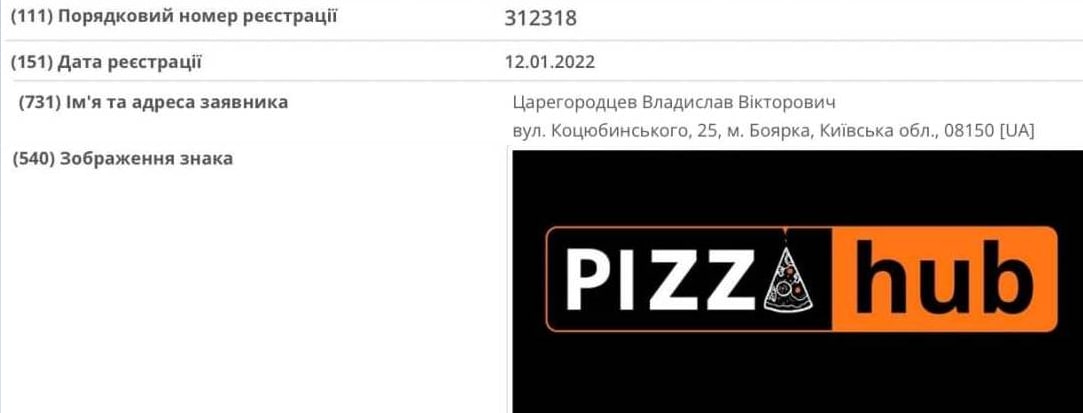 12 січня 2022 року співзасновник першої в Україні піци з настільною грою Pizzhub Владислав Царегородцев зареєстрував однойменну торгову марку. Цікаво, чи будуть позови від Pornhub, адже візуально емблема закладу схожа на відомий бренд? Як повідомлялося, вчора співзасновник monobank Олег Гороховський і представник мережі ресторанів Monopizza посварилися в інтернеті через те, що не змогли поділити частинку mono в назві продуктів.