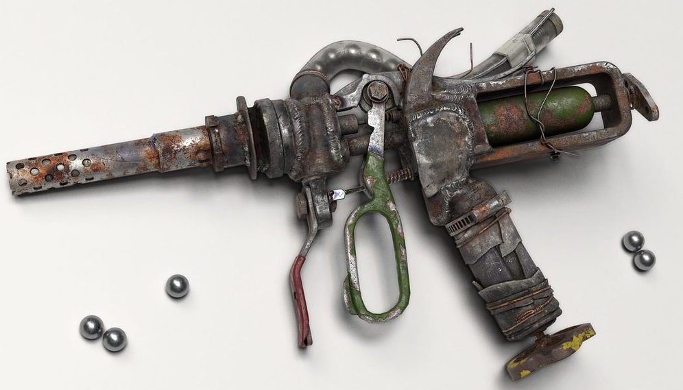 Кирило Руденко зробив постапокаліптичний пістолет, який зварений з ножиць, маховика від крана, металевого сміття й скручений докупи дротом. Тільки здоровий глузд і уточнення автора підказали, що конструкція на фото, яка здається реальною, насправді 3D-модель. Кирило Руденко зазначив, що він лише реалізував авторську концепцію зброї Антона Кухницького (Tony Zenitium) — провідного концепт-художника у GSC Game World.