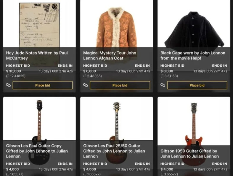 Син Джона Леннона, Джуліан, хоче продати кілька предметів зі своєї колекції. При цьому він збереже фізичні предмети, бо кожен із них продаватиметься як NFT. Очікується, що найбільший інтерес викличе NFT з нотами, написаними Полом Маккартні для пісні "Hey Jude". Початкова ціна лота — £22 260. Очікується, що торги збільшать суму щонайменше удвічі. Онлайн-аукціон з предметами гурту The Beatles відбудеться 7 лютого 2022 року.