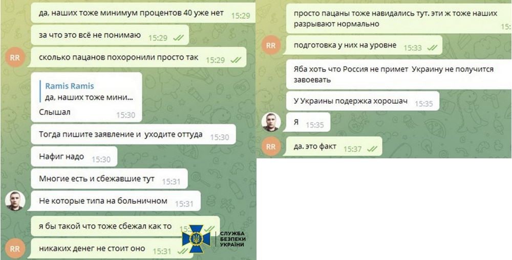 Як сказано у переписці російського окупанта зі знайомим, військові рф зневірились у своїй місії «визволителів» і єдине, чого хочуть — повернутися цілими додому. Копію якої вдалося отримати СБУ. За словами окупанта, українські захисники знищили їхній підрозділ на 40%. Тож він всерйоз задумується над дезертирством і його зовсім не мотивують виплати за поранення.