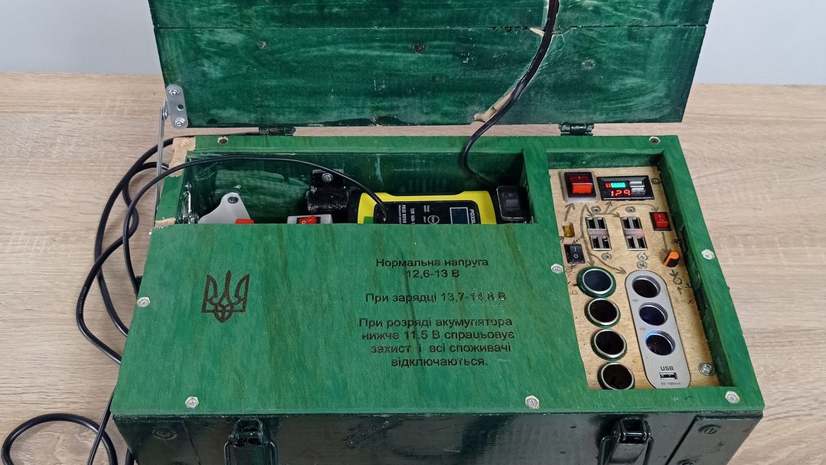Дніпрянин Ігор Кочет зібрав зовнішній акумулятор, здатний зарядити до 20 пристроїв. Першу тестову модель було створено на його особисті кошти, витрати на проєкт становили 6500 грн. Акумулятор має ємність 36А*год при 12v, 11 USB-виходів, заряджається від мережі або в автомобілі. Пристрій оснащений ліхтарем для зручності. Корпусом для армійського пауербанку став ящик для патронів. Детальніше — тут.
