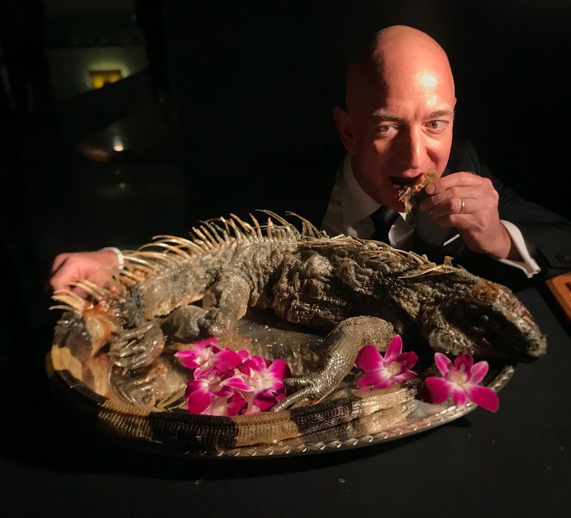 За 27 лет Безос из непримечательного человека, торгующего книгами в интернете, превратился в магната и владельца газет ипароходов ракет, поедающего игуан, а Amazon - из небольшого сайта, в одного из крупнейших интернет-ритейлеров (на него приходится почти половина всей торговли в интернете) со своим телевизионным (Amazon Studios) и стриминговым сервисами (Twitch) и серверами для Телеграма, Пентагона и ЦРУ (Amazon Web Services).