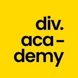 A full-body studio shot of a futuristic stylized figure, young adult wearing a black hoodie with the text «div.academy» on the chest. The hoodie has a modern, structured design, paired with wide-legged dark gray trousers. The model stands confidently with a slight forward lean, hands relaxed, face hidden by the hood, giving a stoic and contemplative expression. Dramatic studio lighting with strong highlights and shadows, set against a vibrant bright orange background that is slightly diffused. Fashion is cyberpunk-influenced with minimalist details, smooth and textured materials. Sharp focus on the subject, cinematic mood, photorealistic rendering, low-angle perspective. Shot with a Canon EOS R5, 85mm f/1.2 lens. Deep orange and dark gray color palette.