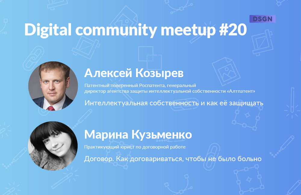 Друзья, уже сегодня в 19:30 пройдет первый в этом году митап дизайнерско-юридический. Будет очень интересно.