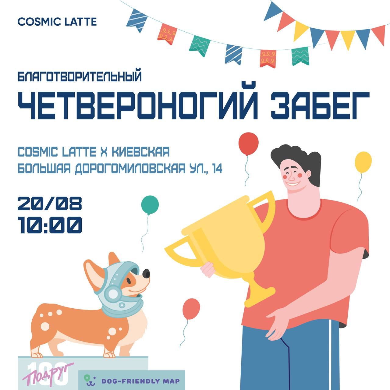 Кофейня Cosmic latte на Киевской 20 августа проведет благотворительный забег с вашими четвероногими друзьями в поддержку фонда «Рэй»