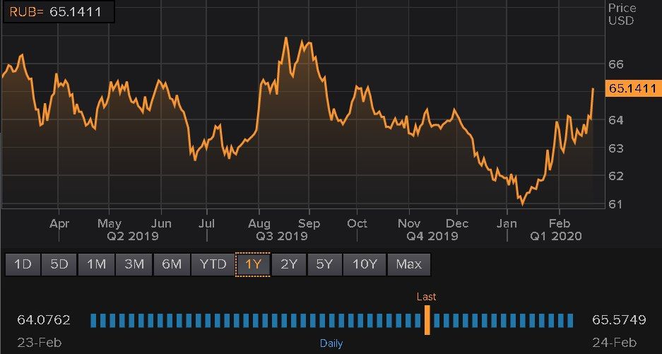 Российские акции на фоне Европы должны бы были выглядеть лучше, если бы не цены на нефть (Brent теряет 4%). Поэтому и российские ADR в Лондоне и рубль (на картинке) также довольно сильно снижаются.