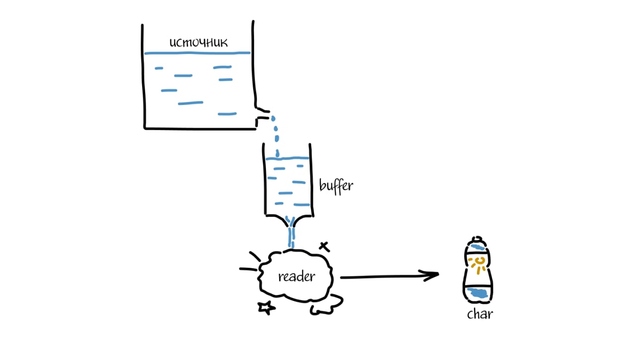 Зачем буфер: если мы читаем файл с жесткого диска, то каждая операция запроса и переноса байтов с самого диска в оперативку занимает много времени. Потому нашей программе лучше за одно обращение считать n-байтов, а не один. Это справедливо для сетевых запросов