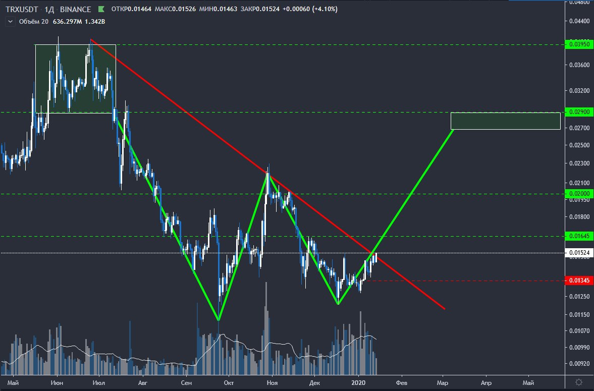 Отработано. Закрылся маржинальный лонг по 0,01645. +48%. Среднесрочную идею по трону писали выше, держим.