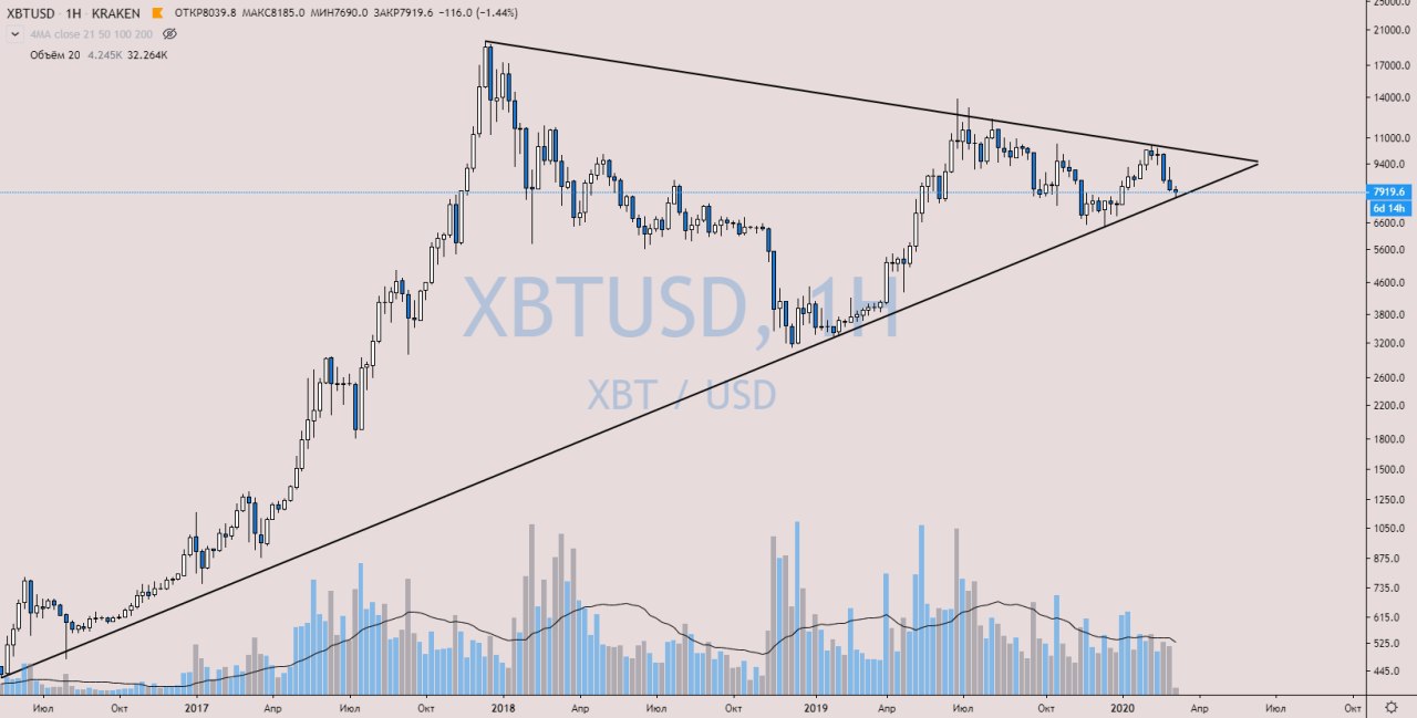 Биток пытается отрисовать коридор, постоянно шугаясь то нефти, то короновируса. И пока мы выжидаем без позиций, можете посмотреть/прослушать подкаст нашего друга @CryptoLamer и его гостя @notothemoon.