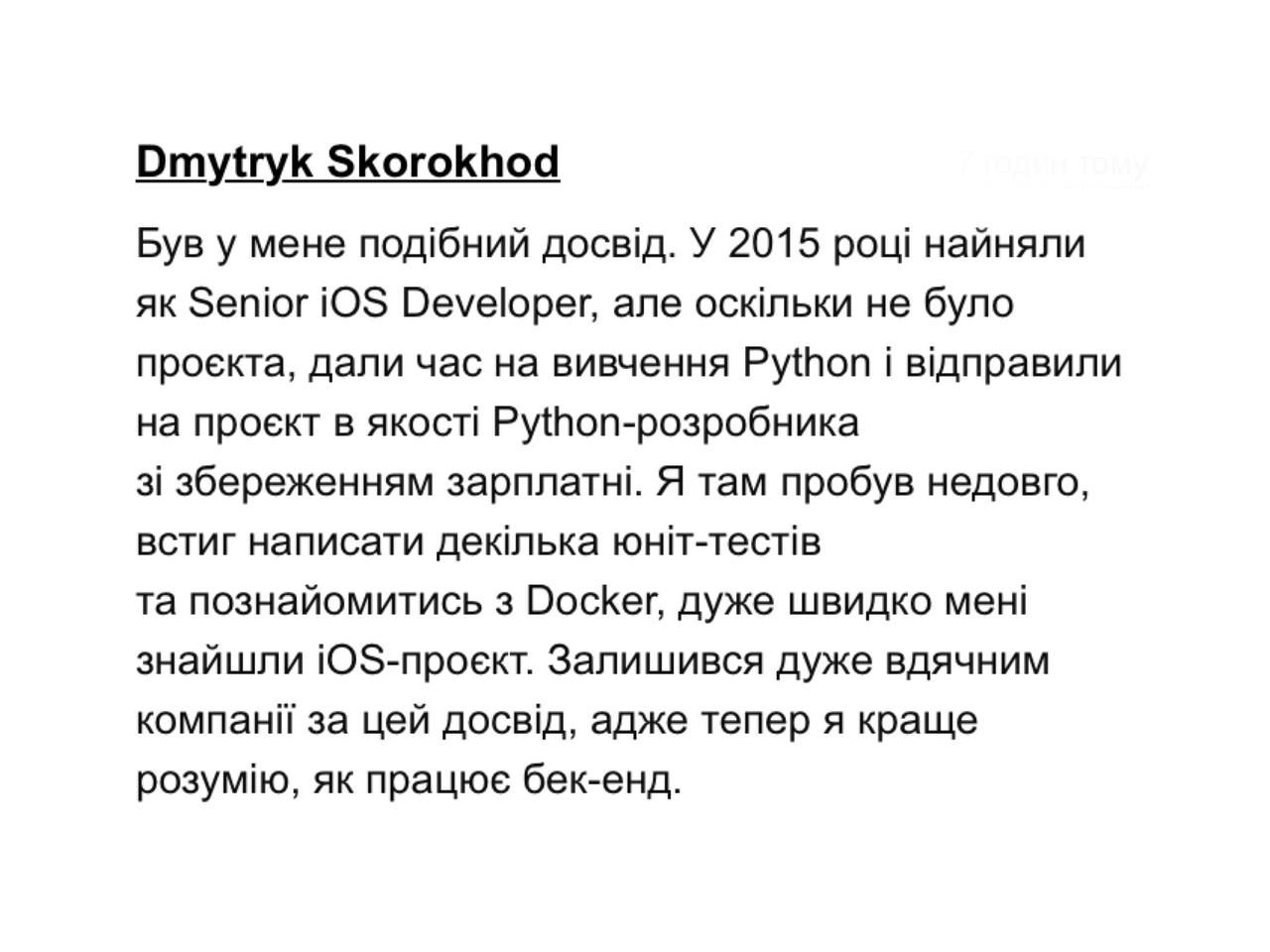 Коментар дня 👇 А ви б хотіли, щоб компанія пропонувала вам вивчити кардинально іншу мову/фреймворк/технологію, ніж ті, з якими ви працюєте?