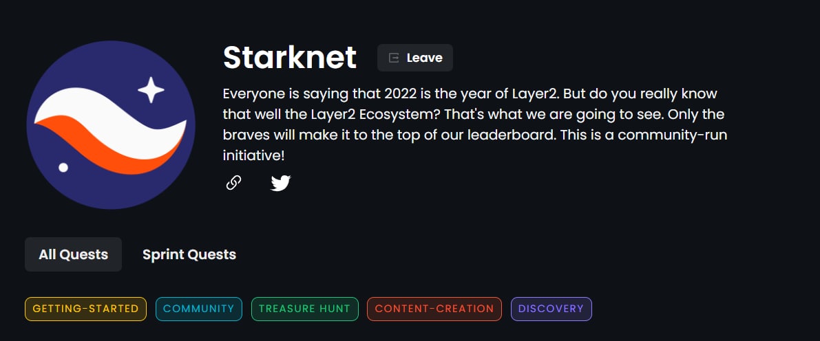 — Переходим на Crew3 от StarkNet, выполняем задания и попадаем в топ лидерборда