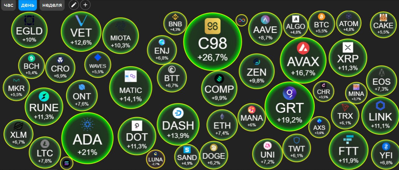 ⚡️C98 показал +300% за последнюю неделю, крайне перспективный проект, но покупку по текущим ценам мы бы не советовали.