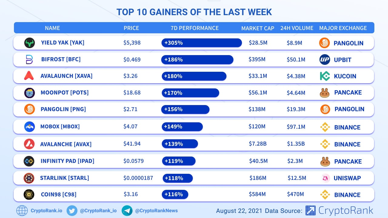 ⭐️Топ 10 крипто-активов, показавших наибольший рост за последнюю неделю