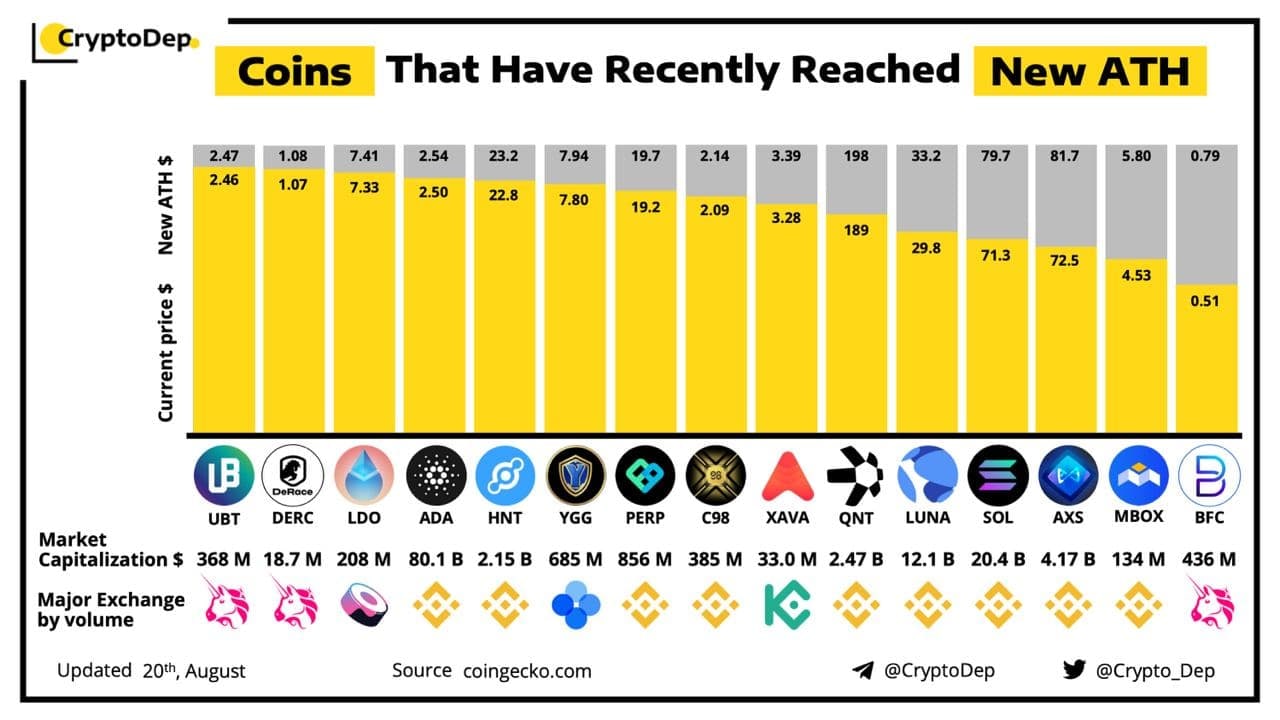 ⭐️Монеты, недавно обновившие свои ценовые максимумы (ATH) на 20 августа