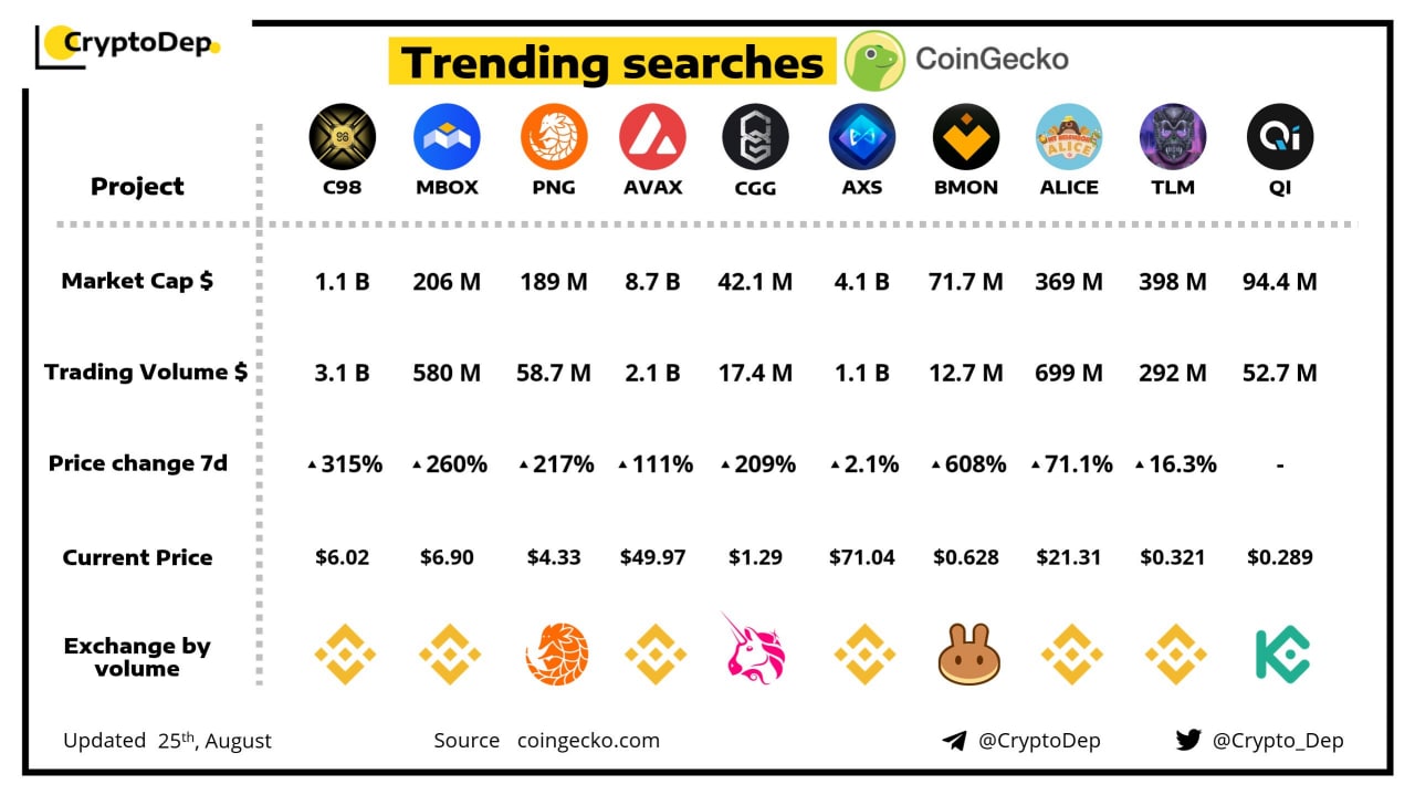 ⭐️Проекты дня от CoinGecko по количеству поисковых запросов
