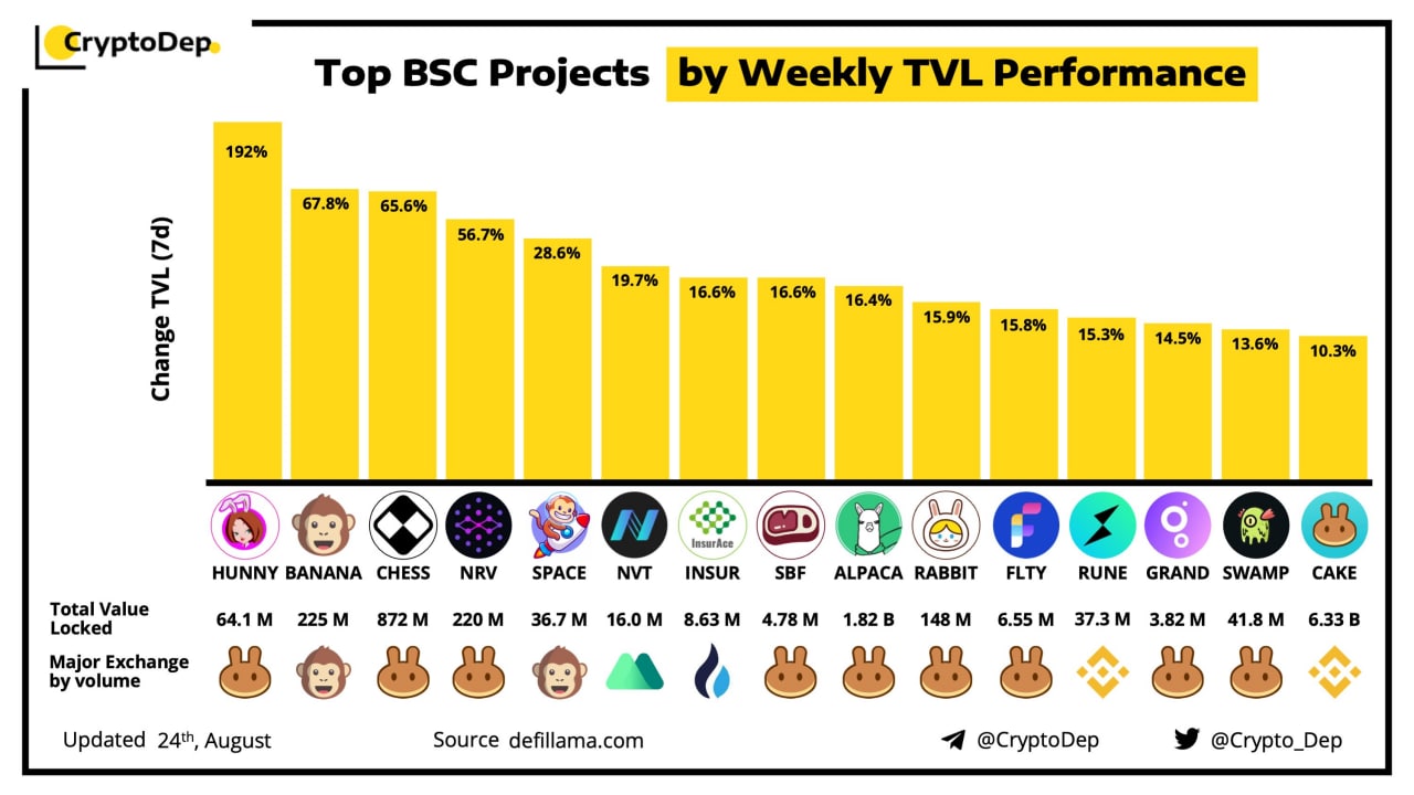 ⭐️Топ 15 проектов в сети Binance по росту TVL за последнюю неделю