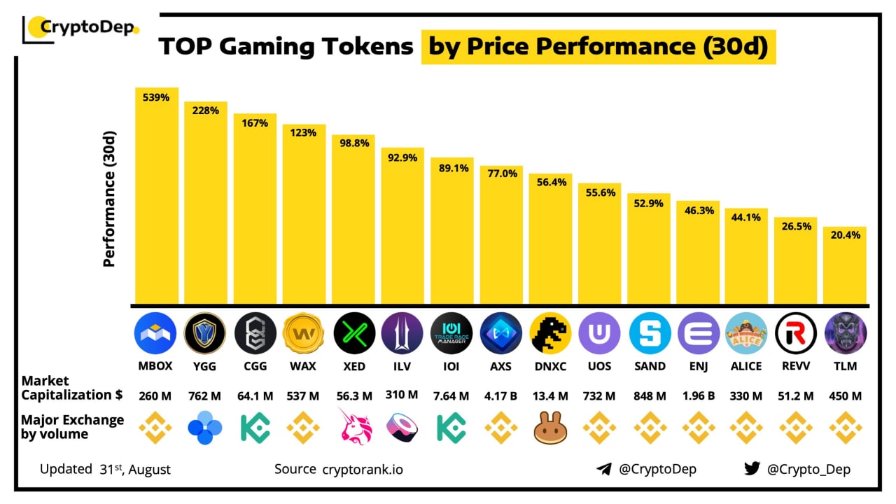 🌟Топ крипто-проектов из игровой индустрии по росту цены за последние 30 дней