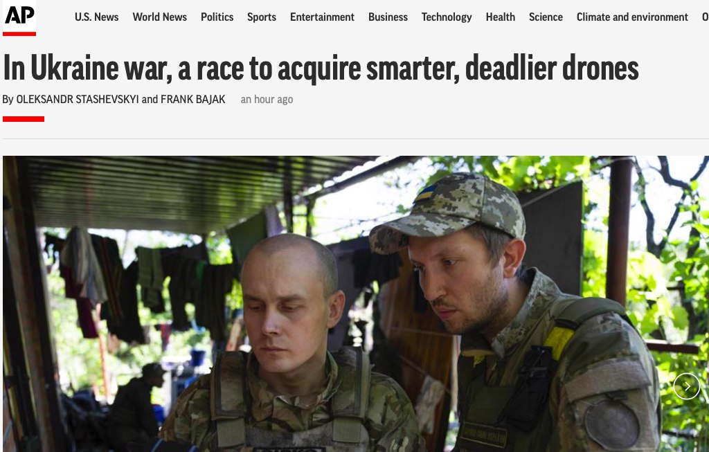 Associated Press в своей статье пишет, что Украина и Россия соревнуются в вопросах покупки беспилотных летательных аппаратов и оснащения ими своих армий.