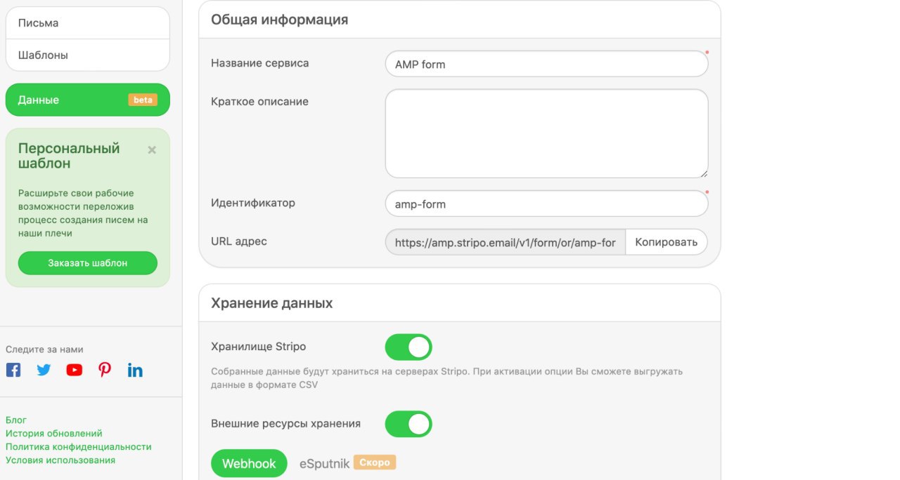 Проводя AMP-опросы в письмах, сверстанных в eSputnik, вы можете получать и хранить ответы пользователей с помощью встроенного сервиса данных в Stripo Email Builder.
