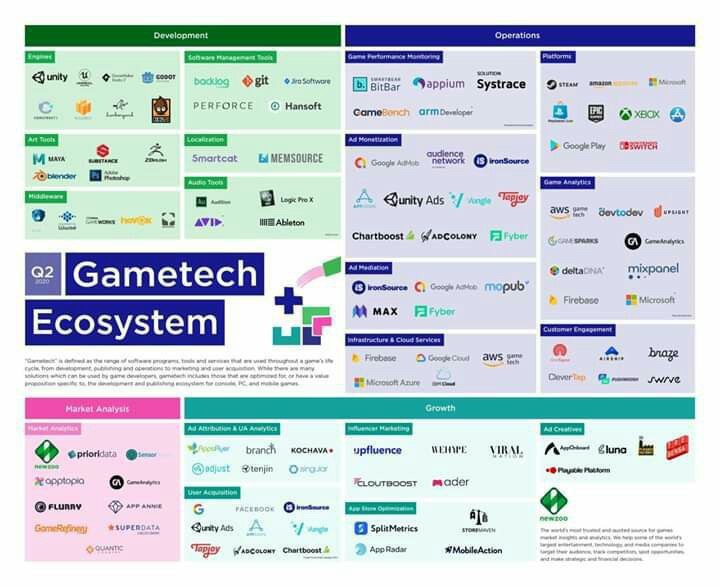 🗺 Симпатично выглядит карта экосистемы геймтеха. Мы, старожилы, помним времена, когда на этой карте было меньше 15 заметных имён. Сейчас их больше дюжины в каждом сегменте.