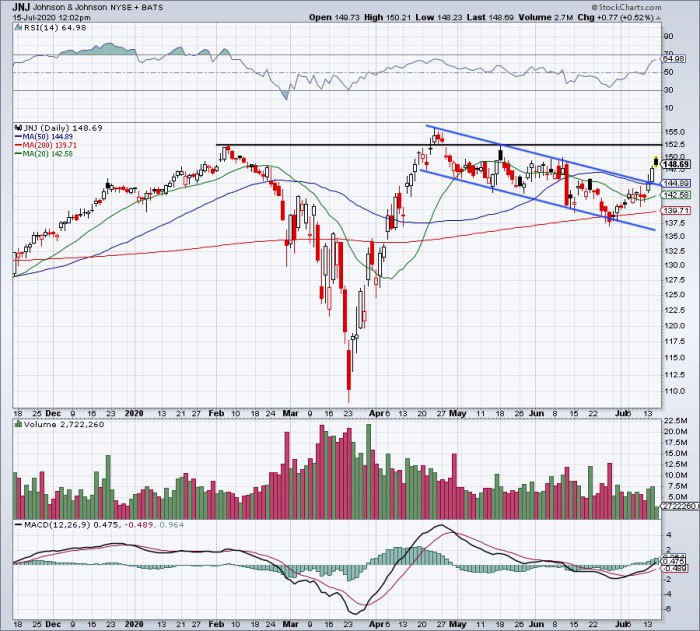 Также желательно, чтобы акции J&J очистили область в диапазоне от $150 до $152.50, в результате чего максимумы достигли бы уровня $156. Если им удастся преодолеть эту отметку, это позволит им вырасти до $163.