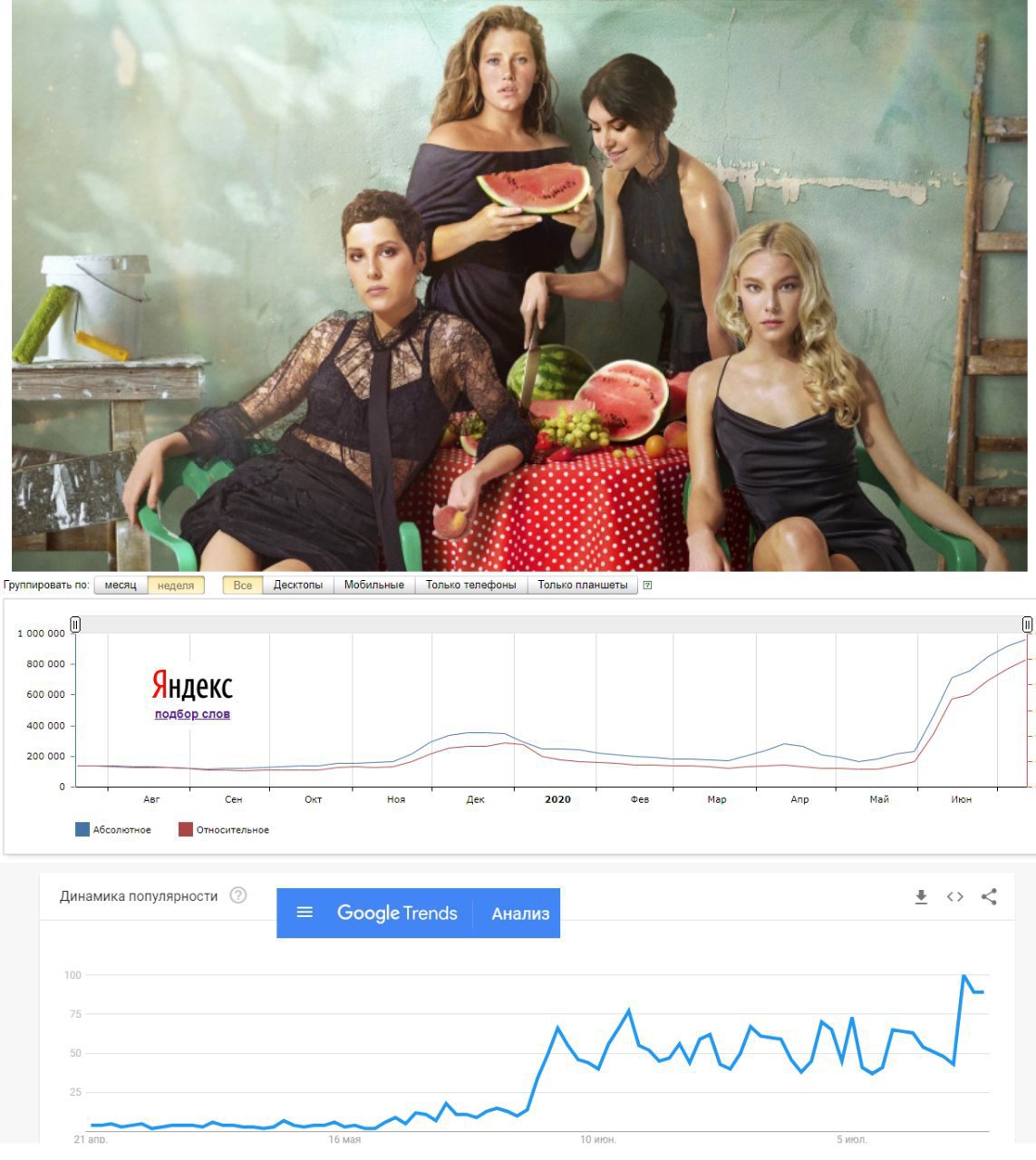 📈 Сериал очень обсуждаем: пульсометры Яндекс и Google показывают число запросов, близкое к 1,000,000 в неделю. Соцсети и СМИ тоже переполнены отзывами. Однозначно, это хит сезона.