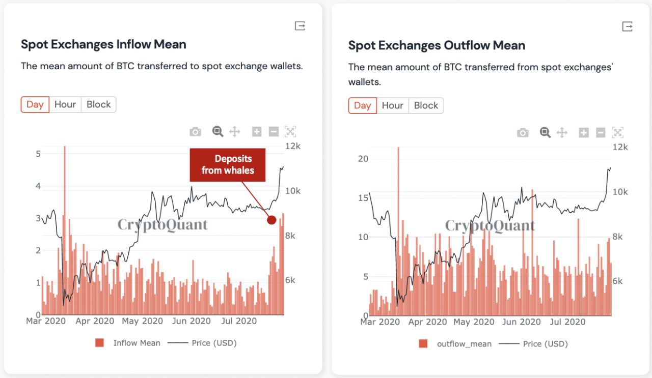 Сумма переводов BTC на популярные биржи в ежедневном исчислении достигла уровня мартовского обвала.