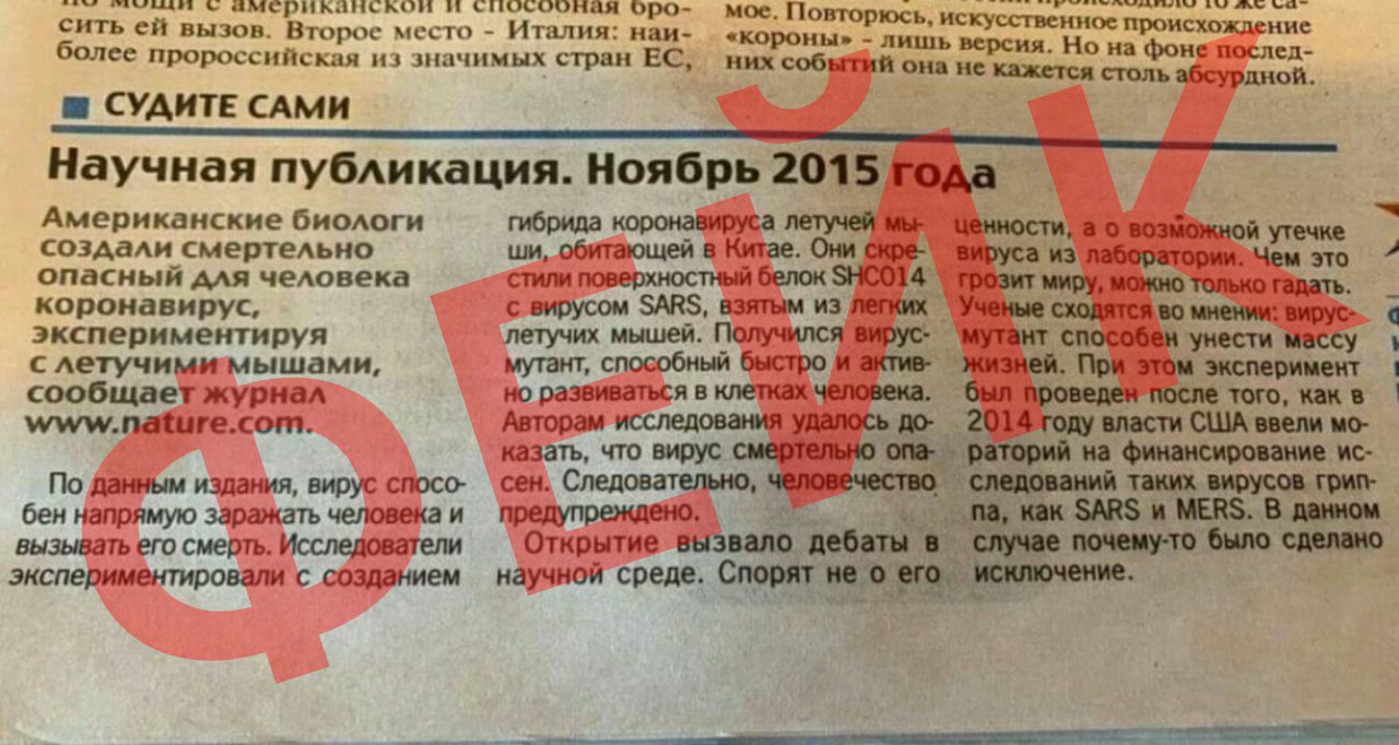 «В 2015 году ученые вместе с коллегами из уханьского Института вирусологии создали «химерный» вирус на основе поверхностного белка SHC014 и вируса SARS.»