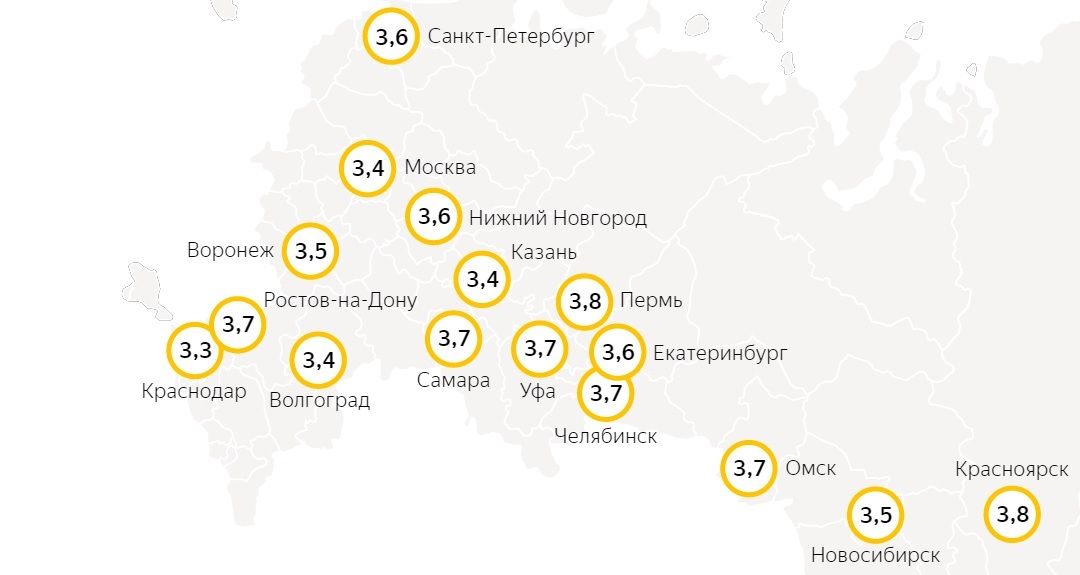 «Индекс самоизоляции» от 0 до 2,4 баллов означает, что вне дома находится слишком много людей, от 2,5 до 3,9 баллов – большинство сидят в квартирах, от 4 до 5 баллов – на улице почти никого. На 30 марта рейтинг Москвы оценивался в 3,4 балла, больше всего изолированных жителей оказалось в Красноярске (3,8) и Перми (3,8), а меньше всего – в Краснодаре (3,3).