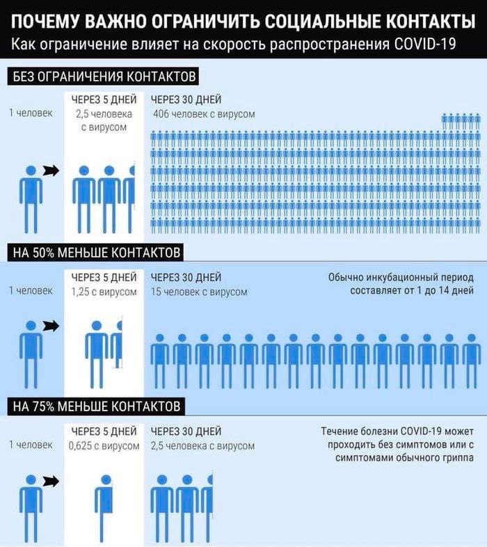 Вводится социальная дистанция между людьми - не менее 1,5 метра, выходить из дома по неуважительным причинам запрещается, в организациях тоже придумают какой-то способ социально дистанцировать людей друг от друга (с помощью разметок, например).