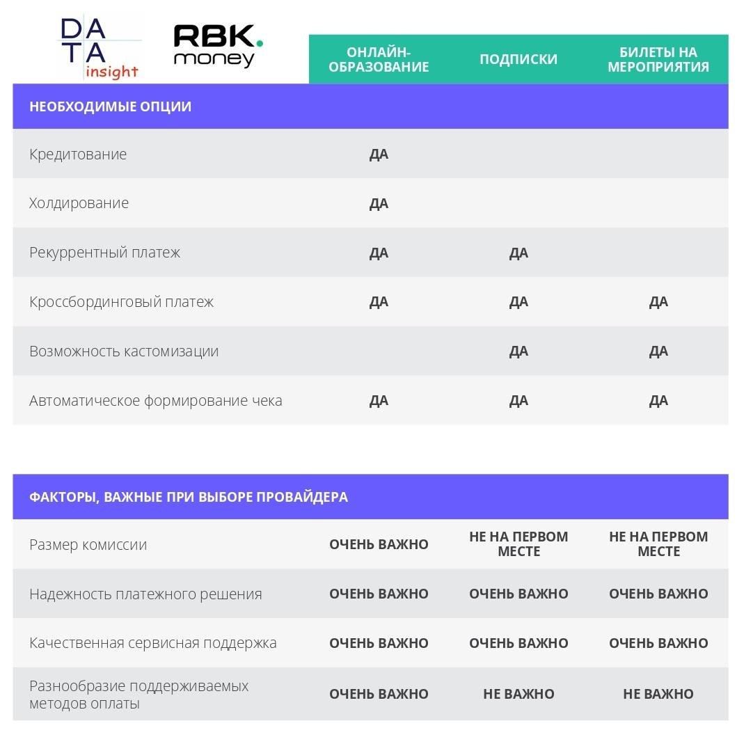 Требования к платёжным системам со стороны участников рынка электронной коммерции (сегменты: онлайн-образование, сервисы подписок, продажа билетов на мероприятия):