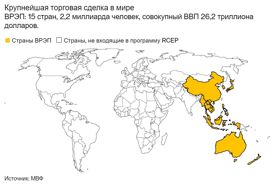 Китай, Австралия, Япония и еще 12 стран Азиатско-Тихоокеанского региона сформировали крупнейшую в мире зону свободной торговли. Соглашение было подписано на полях онлайн-саммита Ассоциации государств Юго-Восточной Азии (АСЕАН), передает Reuters.🔥