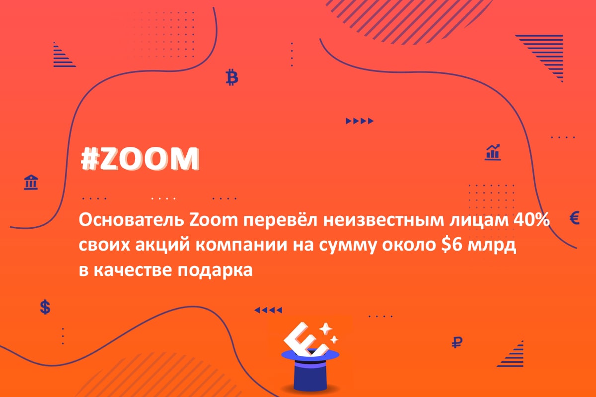👉 Основатель Zoom перевёл неизвестным лицам 40% своих акций компании на сумму около $6 млрд в качестве подарка