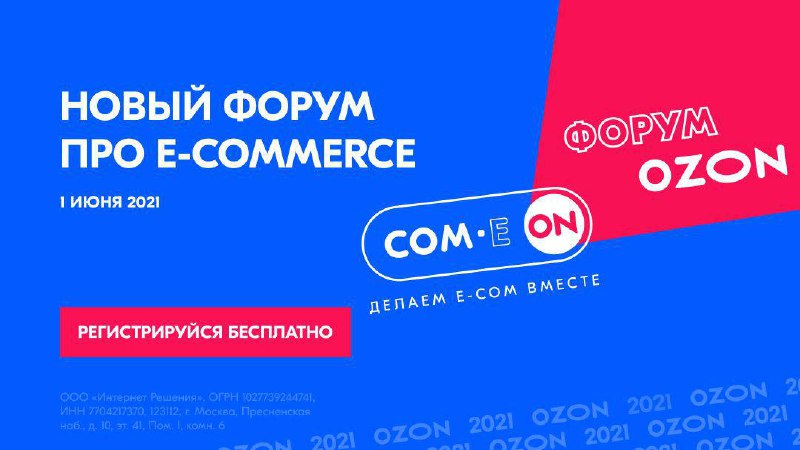 1 июня Ozon объединит 2 000 предпринимателей со всей страны на главном e-commerce событии года — COM.E ON Forum. Ozon познакомит участников форума с личным опытом российских и зарубежных предпринимателей и создаст безграничные возможности для эффективного нетворкинга.