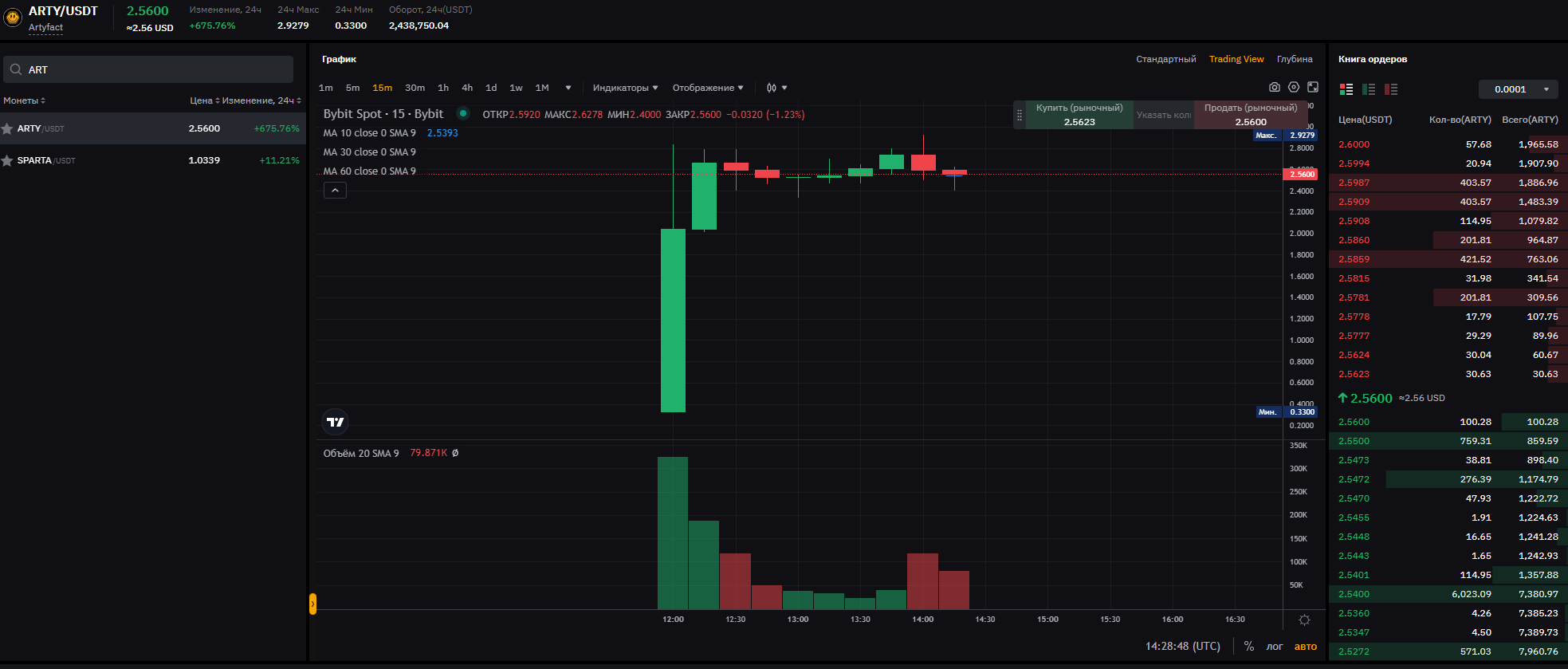 Листинг токена $ARTY