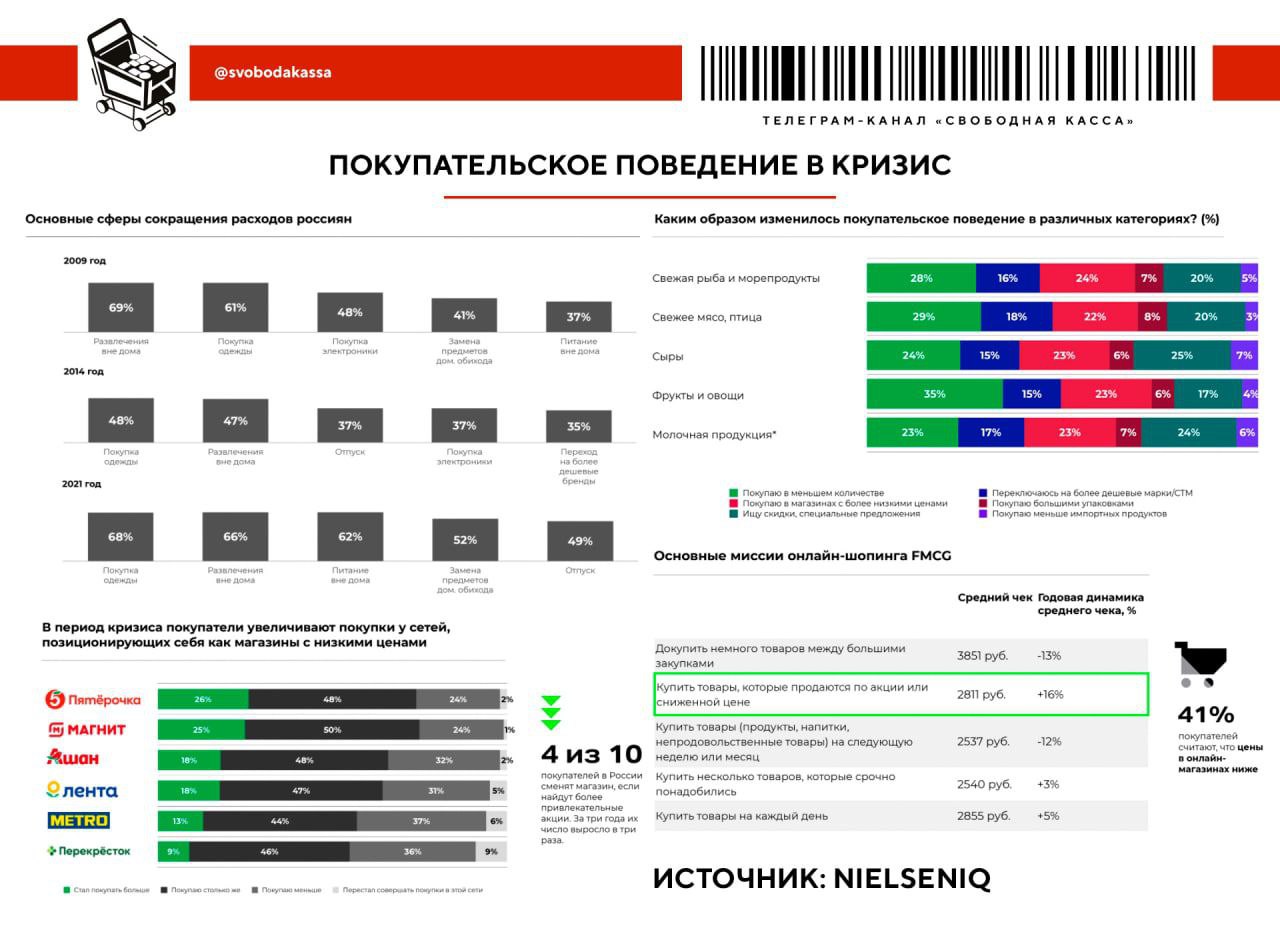 Рост цен на продукты замечают уже 98% покупателей в России. (исследование NielsenIQ)