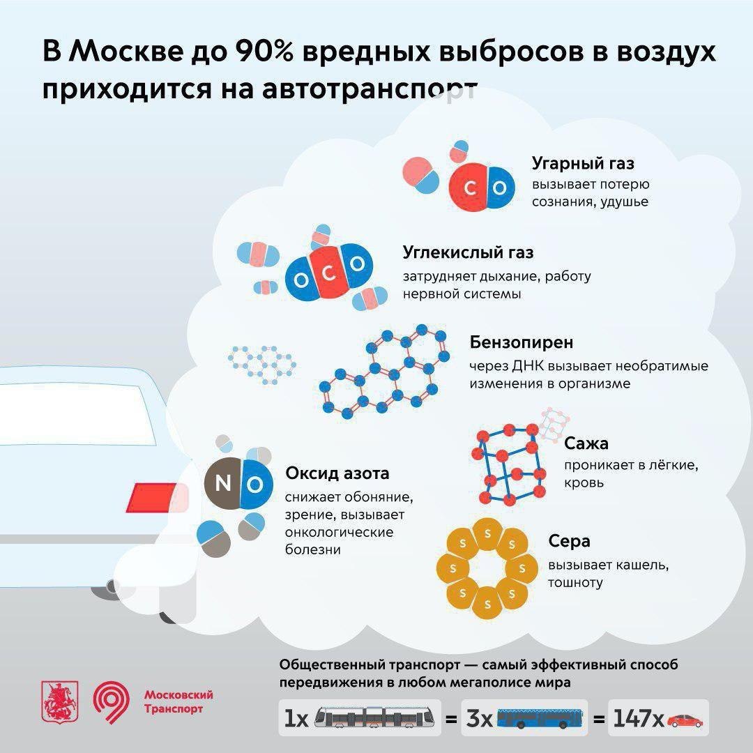 В Москве до 90% вредных выбросов в воздух приходится на автотранспорт