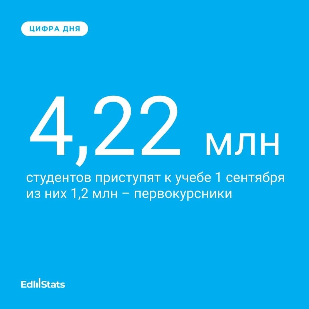 4,22 млн студентов приступят к учебе 1 сентября, из них 1,2 млн – первокурсники.