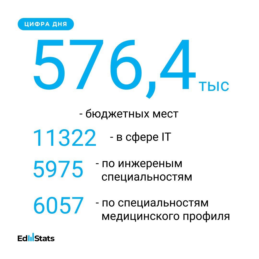 🧷На 2021/22 учебный год общее число установленных бюджетных мест составило 576,4 тысячи.