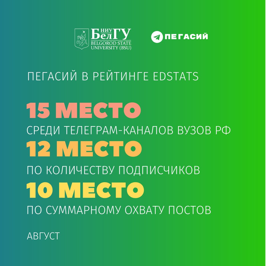 БелГУ занял 15 место в августовском рейтинге @Edstats — за месяц мы поднялись на 2 пункта.