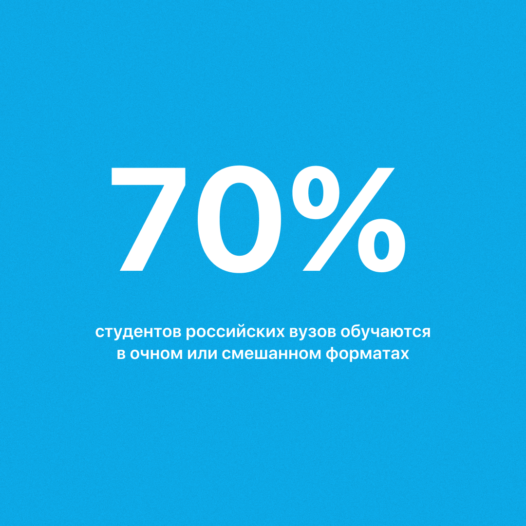 👩💻 Министр науки и высшего образования РФ Валерий Фальков сообщил, что в очном или смешанном форматах обучаются 70% студентов российских вузов.
