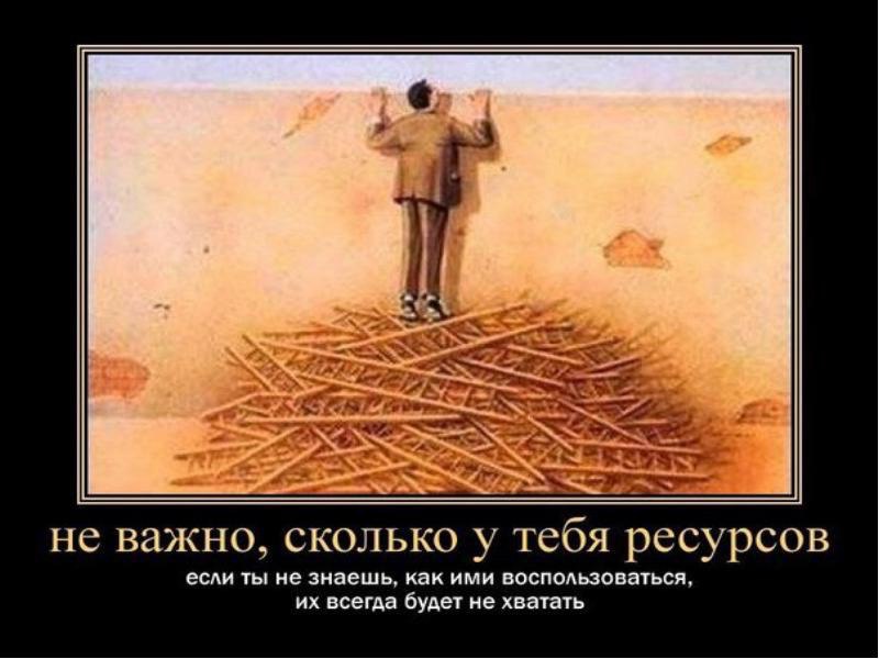 "Хочешь иметь столько денег, чтобы хватало тебе и твоей семье — работай сам. И не важно , сколько у тебя ресурсов,хочешь обеспечить свои будущие поколения — научись использовать эти ресурсы и ресурсы других людей!"