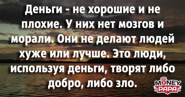 Кто-то однажды сказал: «Причина того, что большинство из нас бедны - в том, что мы тратили всё это на самих себя». Делитесь. Помогайте другим. Когда вы используете деньги, чтобы изменить мир к лучшему, вы получаете шанс сделать ещё больше. Являясь жадным и эгоистичным, вы не притянете к себе деньги.