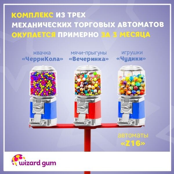 Механические торговые автоматы (те самые с жвачкой, мячиками и игрушками) окупаются за несколько месяцев с прибылью 200-300%. Это простой и понятный бизнес, который может стать делом всей жизни или просто дополнительным заработком.